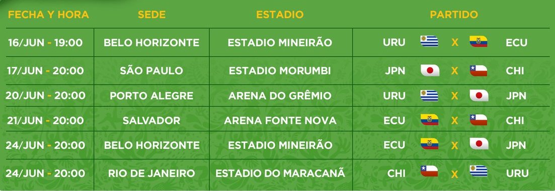 Junto a Chile, Japón y Ecuador se considera el “Grupo de la Muerte” y cualquiera de ellos puede dar el zarpazo; de hecho, Uruguay natural a la Copa América, viene de perder ante Japón en un amistoso, y Chile es el campeón vigente, Ecuador siempre promete con su capacidad física y resistencia.
