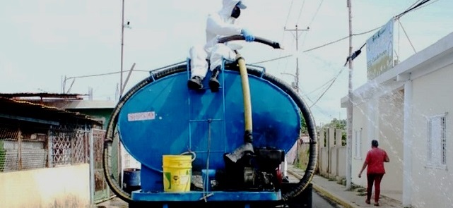Con anterioridad, el alcalde Leónidas González había anunciado en cadena radial el cierre total para todo el día de ayer de comercios y establecimientos, a excepción de las farmacias, para ejecutar la jornada de desinfección. Residentes del municipio debieron tomar medidas cautelares sobre abastecimiento de alimentos y agua para no salir a las calles.