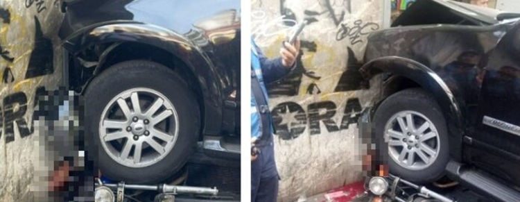 Asimismo, indica que el conductor perdió el control de la camioneta, aceleró de sorpresa y posteriormente impactó contra una pared, aplastando a un motorizado que pasaba en ese momento por allí.