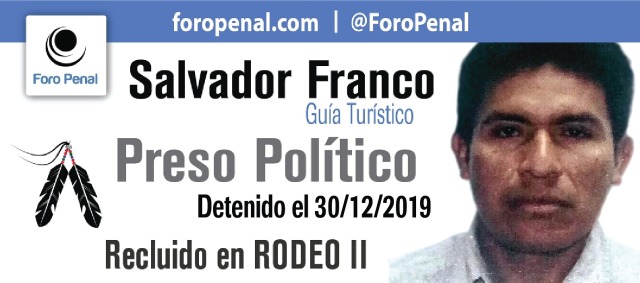 “La salud del preso político indígena pemón Salvador Franco se ha deteriorado gravemente. Ya hoy no puede ni siquiera alimentarse por sí mismo. Su vida y su salud son responsabilidad directa de quienes lo mantienen injustamente encarcelado”, dijo en Twitter el Foro Penal el pasado 24 de diciembre.