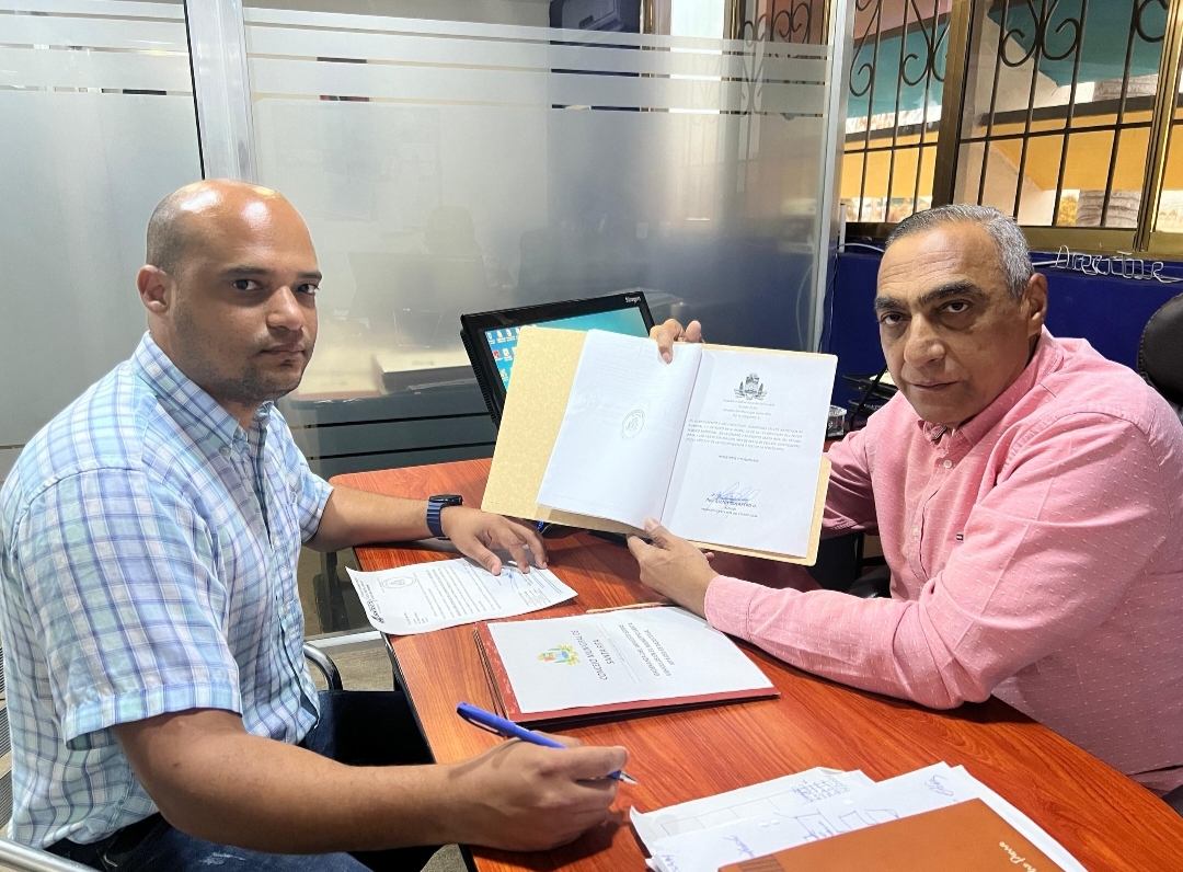 El alcalde de Santa Rita, Alenis Guerrero, en compañía del secretario de la Cámara Municipal, Carlos Núñez, firmó la Ordenanza sobre la Creación y Regulación del Impuesto sobre Vehículos.