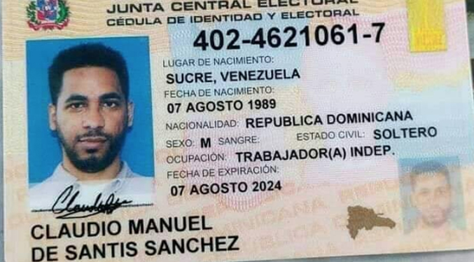 El venezolano, quien llegaba con un amigo, fue asaltado por haitianos que querían robarlos, pero ellos se resistieron y en el forcejeo, Claudio Manuel recibió un tiro en la frente.