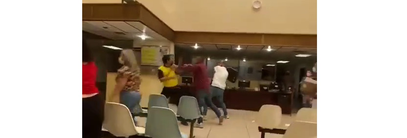 También se observa al miembro del Congreso de la Nueva Era, Michel Duque, arrojando una silla que impacta contra la humanidad de Emilio Fajardo.