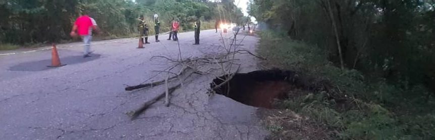 Luego de las fuertes lluvias, un caño ha provocado un socavamiento en la Lara-Zulia, a la altura de Las Pavas en el municipio Lagunillas, en la Costa Oriental del Lago.