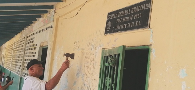 La Escuela Estadal José Enrique Rodó ubicada en la carretera H de Cabimas está siendo sometida a trabajos de reacondicionamiento de sus áreas por parte de la Brigada, Comunitaria Militar para la, Educación Salud (Bricomiles).