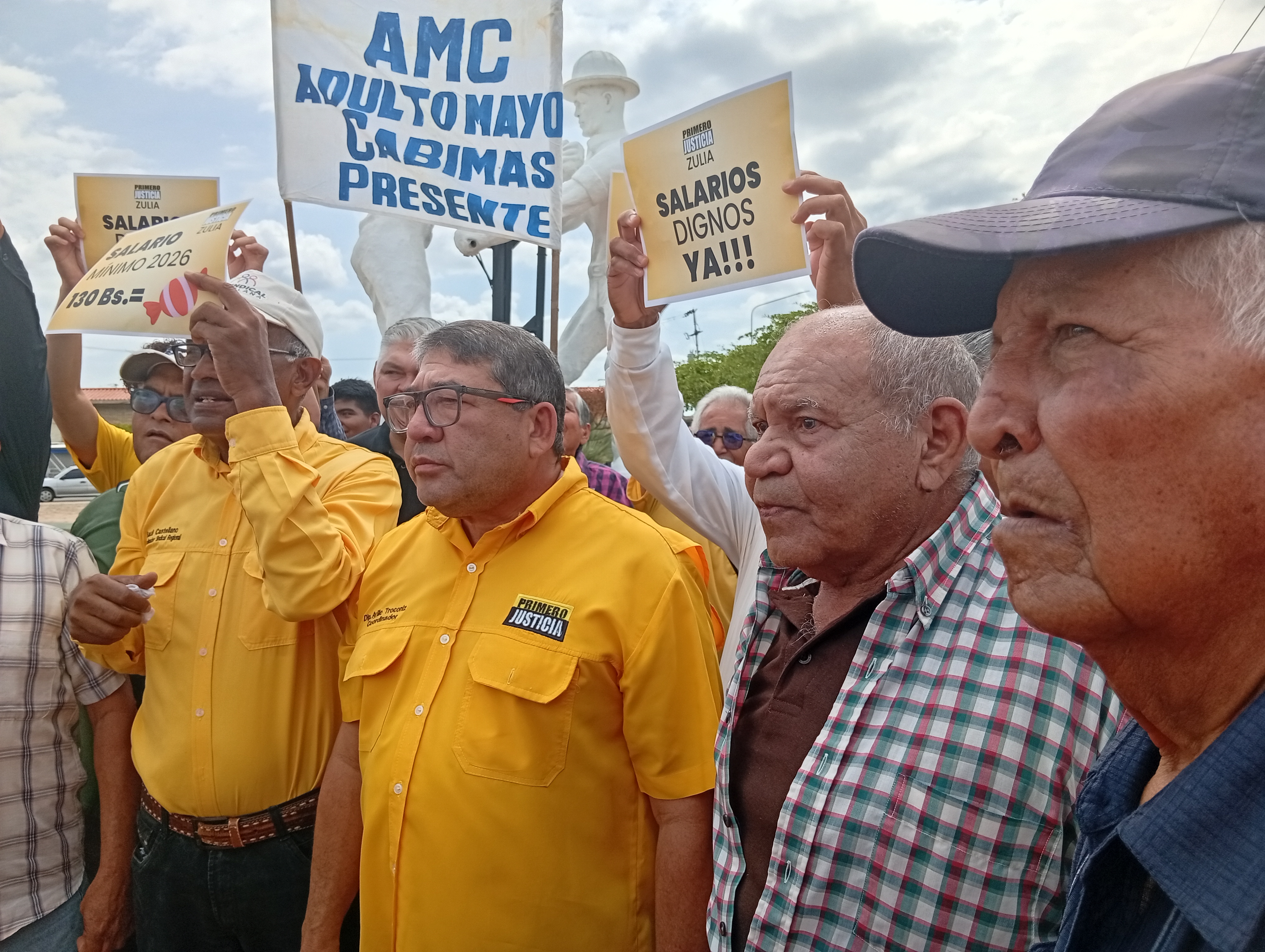 Durante la mañana de este martes 21 de abril, desde el emblemático Monumento al Trabajador Petrolero en el sector Nuevo Juan de Cabimas , la directiva regional, municipal y militantes de la organización política Primero Justicia y sindicalistas en una concentración pacífica exigió al gobierno nacional una respuesta contundente al tan esperado anuncio del aumento de salario.
