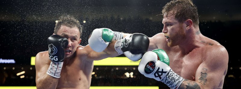 Canelo venció al kazajo de 40 años en una pelea a doce rounds en la que expuso los cuatro cinturones principales de la división (Federación Internacional de Boxeo, Consejo Mundial de Boxeo, Asociación Mundial de Boxeo y Organización Mundial del Boxeo), que obtuvo en noviembre de 2021 cuando se convirtió en el primer pugilista latino en conseguir tal hito.