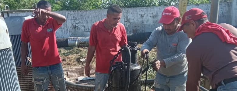 Personal técnico de Hidrolago realizó labores de reparación de una bomba que forma parte del sistema de la estación de bombeo de aguas residuales F10 en Ciudad Ojeda.