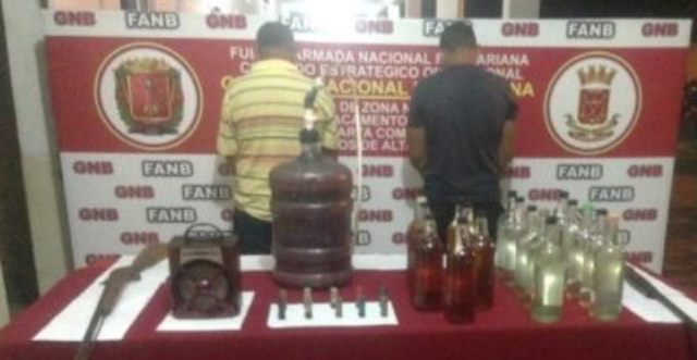 En una primera operación militar desarrollada en el sector Los Naranjos de la parroquia Altagracia, por instrucciones del comando de Zona 11, cayeron en manos de los funcionarios de dos sujetos, en cuyo poder se encontraban dos armas de fuego, diez municiones, 16 botellas de ron, un botellón de aguardiente artesanal, presuntamente cocuy, un celular y una corneta de sonido.