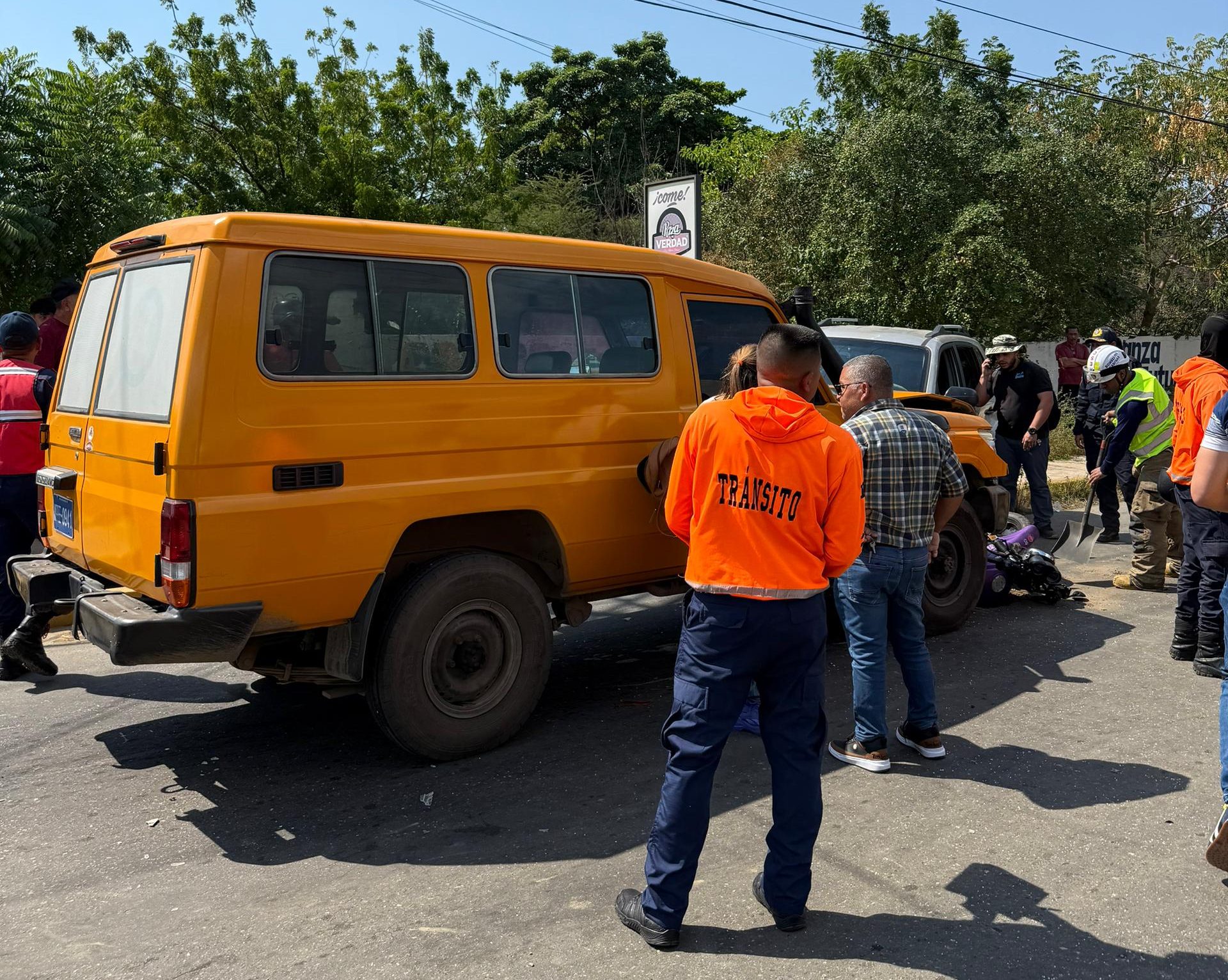 La tarde de este jueves, 9 de enero, se reportó una colisión entre una camioneta de Corpoelec, un vehículo y una moto en la avenida 32 con carretera K de Cabimas, en la Costa Oriental del Lago. El conductor de la moto resultó lesionado.