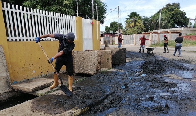 El representante de la Comuna “Las 4 Raíces” informó, que en el caso particular del sector Miraflores se requirió el uso del vacum para iniciar el saneamiento de los drenajes donde existe una gran cantidad de sedimentación que está siendo extraído con el trabajo manual que hacen el equipo de hombres dedicados a esta labor y que ha contado con el apoyo de la propia comunidad.