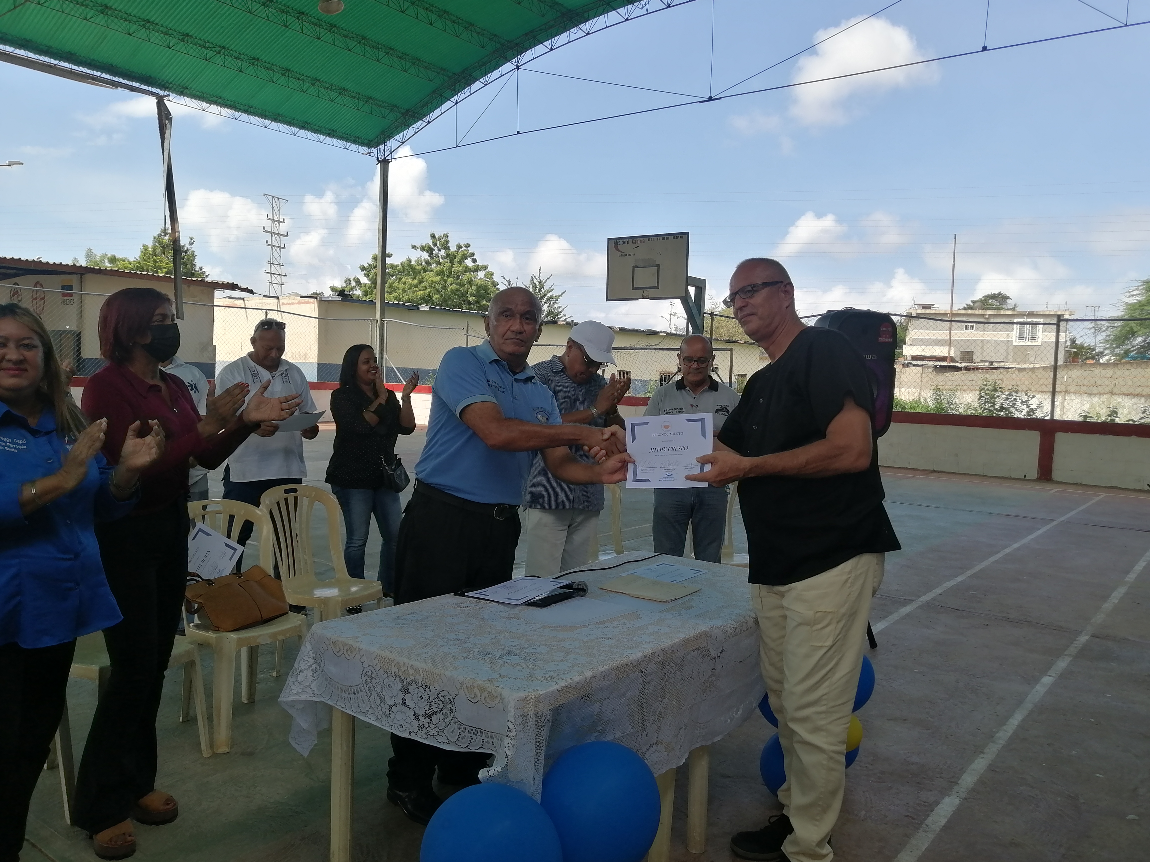 En la cancha del módulo de salud del 26 de julio en la parroquia San Benito, el Bloque vecinal Cabimas en horas de la mañana de este 3 de octubre convocó a los representantes vecinales de las nueve parroquias de Cabimas, donde se hizo entrega de reconocimiento a varios miembros de la comunidad organizada y realizaron un ameno compartir.