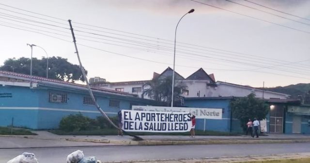Personal médico de distintos hospitales de Venezuela desplegó pancartas para anunciar el pago del bono Héroes de la Salud, entregado por el gobierno interino de Juan Guaidó para contribuir en el combate de la pandemia.