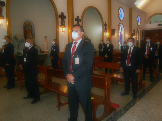 La actividad se realizó en la Catedral de Cabimas y con contó con la presencia de un significativo número de funcionarios guardando el distanciamiento social así como del comisario general, Julio Silva, jefe de la delegación de Cabimas en la Costa Oriental del Lago.