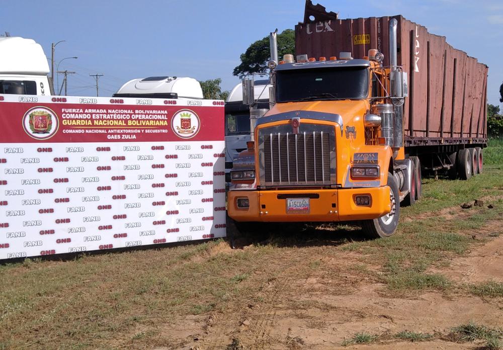 Efectivos militares adscritos al GAES Costa Oriental del Lago, luego de iniciar trabajos de investigación en el sector Tía Juana, Municipio Simón Bolívar del Estado Zulia, efectuaron la incautación de un vehículo de carga con el materia estratégico.