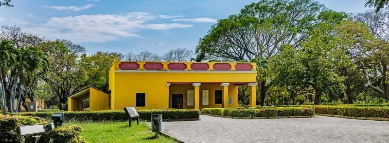 De manera imponente apreciamos distintas edificaciones de color amarillo ocre, integradas por la Casa Quinta y el sector laboral, que en su época hace más de 500 años tenía como principal actividad económica la producción y comercialización de la caña y el ron.