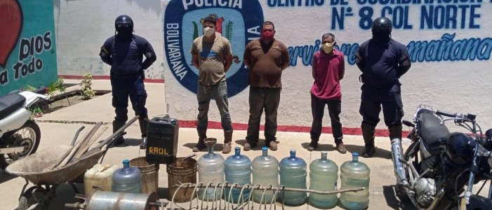 Tras recibir una denuncia, funcionarios del Cuerpo de Policía Bolivariana del estado Zulia (Cpbez) lograron detener en la Carretera J a la altura del Sector 8 del municipio Cabimas, estado Zulia, a tres ciudadanos por el delito de fabricar ilícitamente licor artesanal.
