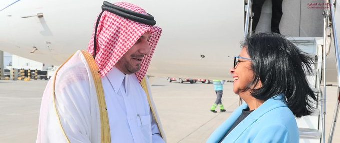 La delegación venezolana fue recibida en el aeropuerto internacional de Hamad por el director del Departamento de Protocolo del Ministerio de Relaciones Exteriores qatarí, Ibrahim Yousif Abdullah Fakhro, y el embajador de Venezuela Qatar, Carlos José Mata Figueroa.
