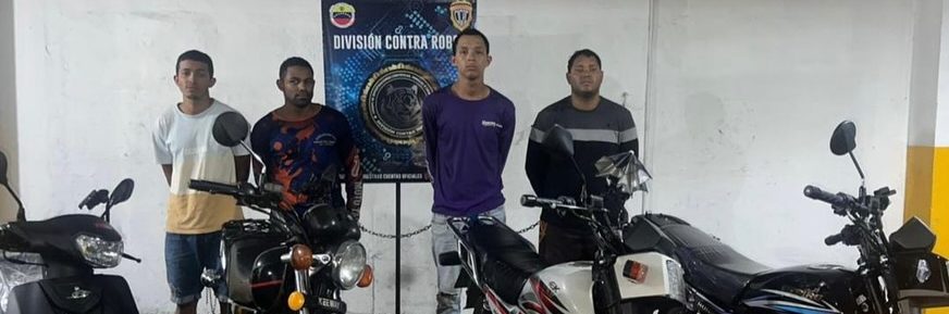 Estos antisociales fueron detenidos en el sector 1 de San Blas, parroquia Petare, municipio Sucre, y Pedregal, parroquia y municipio Chacao, estado Miranda, donde se ubicaron como evidencias unas motos: una Keeway Owen, placa AB5C221, una Keeway Horse 150, placa AB8X17L; una Bera Abrazo, placa AW2C29V; una Keeway Horse 150, placa AL2Z56G, así como una Keeway Horse 150, placa AC9G86P.