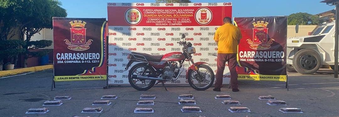 Efectivos de la Guardia Nacional Bolivariana en el municipio Mara, estado Zulia aprehendieron a una persona que llevaba un saquito con 26 panelas de marihuana.