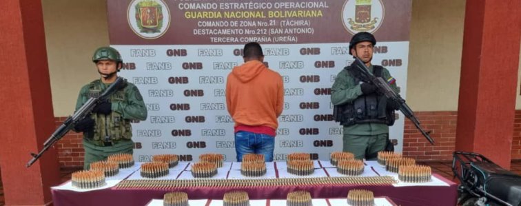 Vílchez Mosquera procedía de Colombia y se dirigía hacia San Cristóbal (Táchira). Fue entregado al Ministerio Público para ser procesado por posesión ilícita de material de guerra, explicó la fuente.