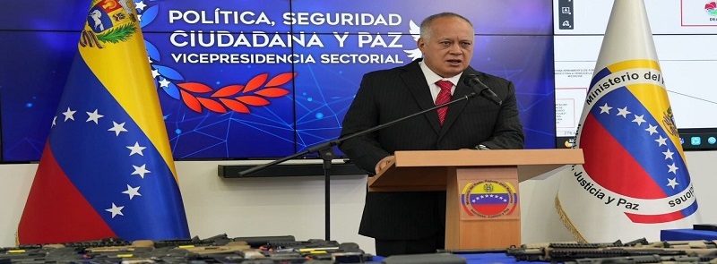 El vicepresidente sectorial de Política, Seguridad Ciudadana y Paz, Diosdado Cabello Rondón, a través de una rueda de prensa, informó la incautación de 71 nuevas armas de guerra, además de la captura de dos hackers estadounidenses.