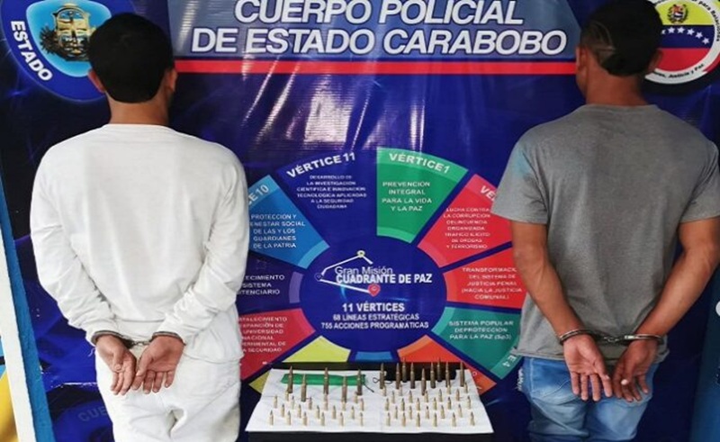 Este jueves, 17 de julio, en la carretera nacional Mariara–Maracay —sector Las Vueltas, Puente La Baba, parroquia Mariara— fueron arrestados dos hombres tras incautarles 60 municiones de guerra ocultas entre sus pertenencias íntimas.
