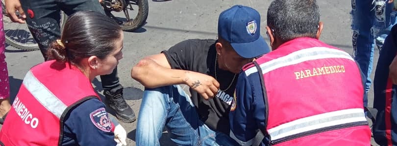 El conductor de la moto, identificado como Israel Bracho, de 23 años, resultó herido con posible fractura en la clavícula.