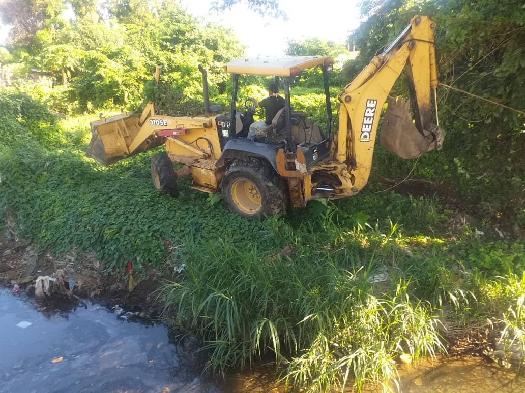 El director de Seguridad Ciudadana, Ángel Vergara y la concejal Marisol Laguna, estuvieron presentes durante el trabajo que llevó a cabo el equipo de la Gran Misión Barrio Nuevo, Barrio Tricolor con apoyo de la Comercializadora Samar (Consamar), empresa que dispuso de una retroexcavadora con la cual limpiaron cerca de dos kilómetros de ducto, para evitar que se generen inundaciones durante las precipitaciones.