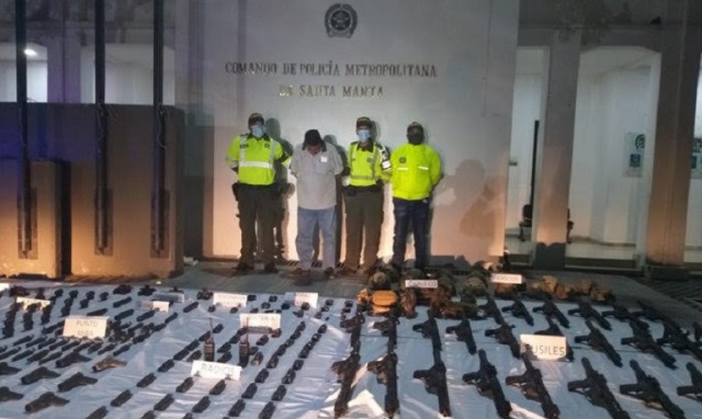 Las autoridades colombianas detuvieron a un hombre que transportaba en una camioneta 26 fusiles de asalto, entre otras armas de guerra.