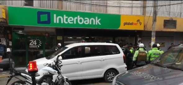Dos delincuentes fueron detenidos cuando intentaban robar el Banco Interbank, ubicado en el Jirón Iquique, en el distrito de Breña.