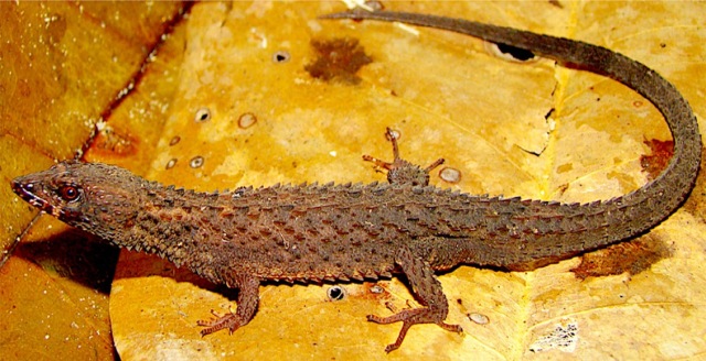 Este lagarto acorazado, nombre en castellano, vive en las inmediaciones del amazónico cerro Autana, un tepuy, nombre con el que se conocen a unas mesetas con paredes verticales y cimas relativamente planas, universalizados en la literatura por Arthur Conan Doyle y en el cine por Up