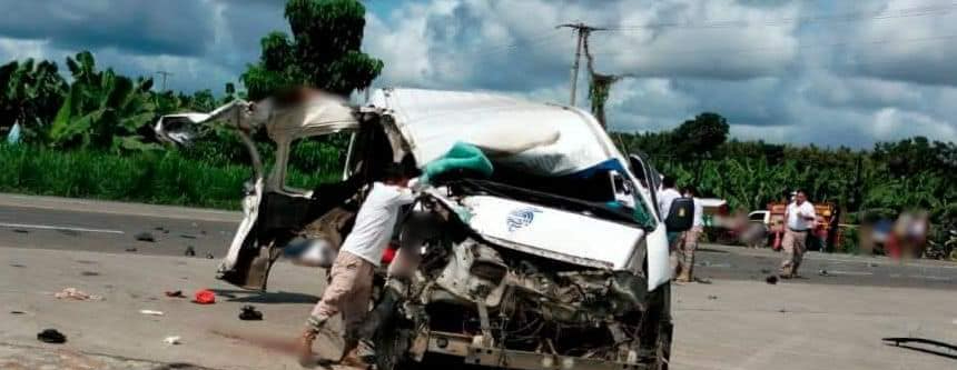 La fuerte colisión ocurrió a las 11:20 a.m. entre una camioneta Combi, donde iban los venezolanos, y una gandola. La unidad transitaba de Suchiate hacia Tapachula, y de repente fue impactada por el vehículo de carga.