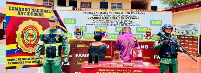 Tras labores de inteligencia y patrullaje de seguridad ciudadana, efectivos militares adscritos al Destacamento 111 del Comando de Zona N° 11 de la Guardia Nacional Bolivariana, efectuaron la aprehensión en flagrancia de una pareja dedicada a la distribución y comercialización de drogas en el municipio Maracaibo.