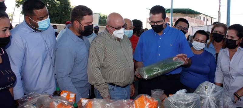 José Luis Alcalá, Secretario General de Gobierno, acompañado por Nabil Maalouf, alcalde de Cabimas, explicó que sólo para esta jornada el Ejecutivo regional dispuso más de 150 toneladas de alimentos para los habitantes de los sectores Rosa Vieja y El Porvenir de la parroquia La Rosa.