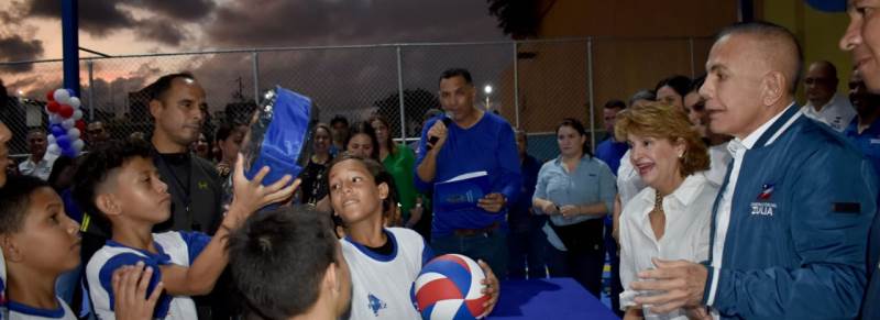 Resaltó que esta cancha de usos múltiples se lo entregaba a la comunidad, a los muchachos y muchachas. «Estaba preguntando por qué no dejaban entrar a la gente a este espacio deportivo? Esto no es para nosotros. Esto es para la comunidad. Son los primeros que tienen que estar aquí. Tienen que cuidar y conservar todo esto».