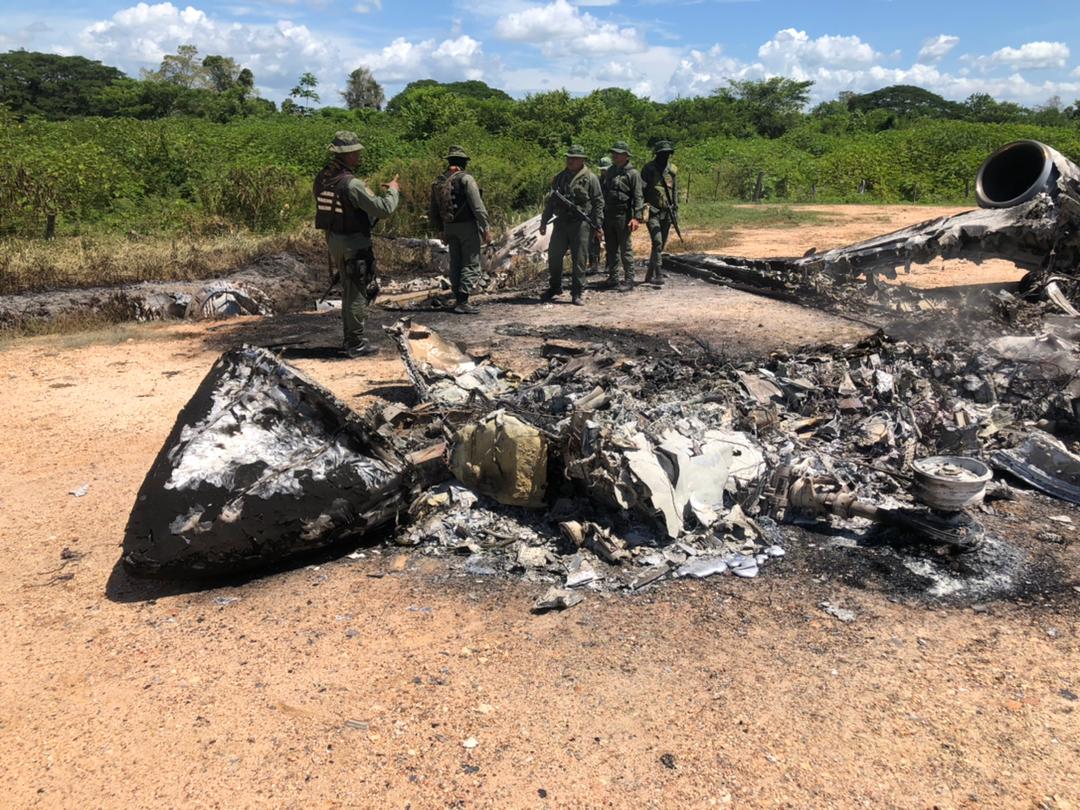 El General de División Alberto Fermín Ulisse, Comandante de la GNB en el Zulia destacó que los efectivos militares tras el alerta del Comando de Defensa Aeroespacial Integral (CODAI), dieron, no solo con la pista clandestina, la cual pretendían utilizar de tránsito para la distribución de drogas, sino con una aeronave calcinada en un 90% del su total estructura. Sin siglas visibles.
