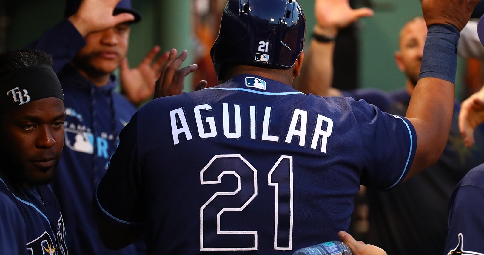 Jesús Aguilar tuvo su debut con Tampa Bay, y entre sus hits, uno fue un fuerte batazo contra el monstruo verde.