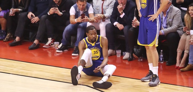 La lesión del alero se presentó en el pasado quinto partido de las finales de la NBA entre los Raptors de Toronto y Warriors, tras intentar atacar a Serge Ibaka, inmediatamente Durant se dirigió a los vestidores.