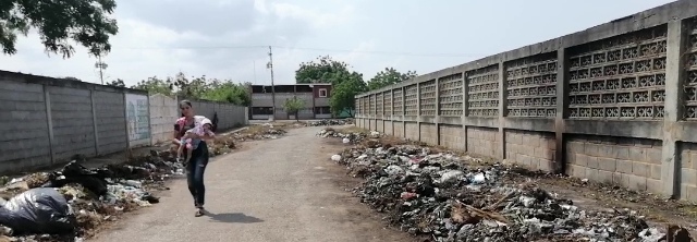 Padres y Representantes, vecinos de este sector, consejo comunal manifiestan que en la escuela Ramón Ocando Pérez hay más de 400 niños que se ven afectados sin mencionar a los otros más de 300 de la Escuela María Chiquinquirá Báez, que se ven afectados por esta basura que es ocasionada por los propios residentes y por los que andan en las carruchas prestando un servicio de aseo sin tomar en cuenta el lugar donde lanzan los desechos sólidos.