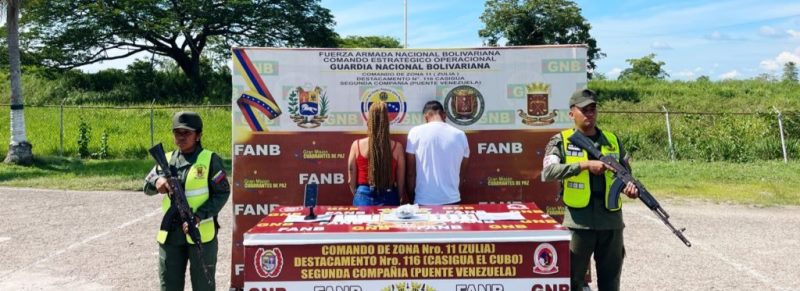 Funcionarios del Destacamento 116 del Comando de Zona N 11 de la Guardia Nacional Bolivariana (GNB), capturaron a una pareja de delincuentes dedicados a la comercialización de sustancias estupefacientes y psicotrópicas y tráfico de armamento en la región Sur del Lago.