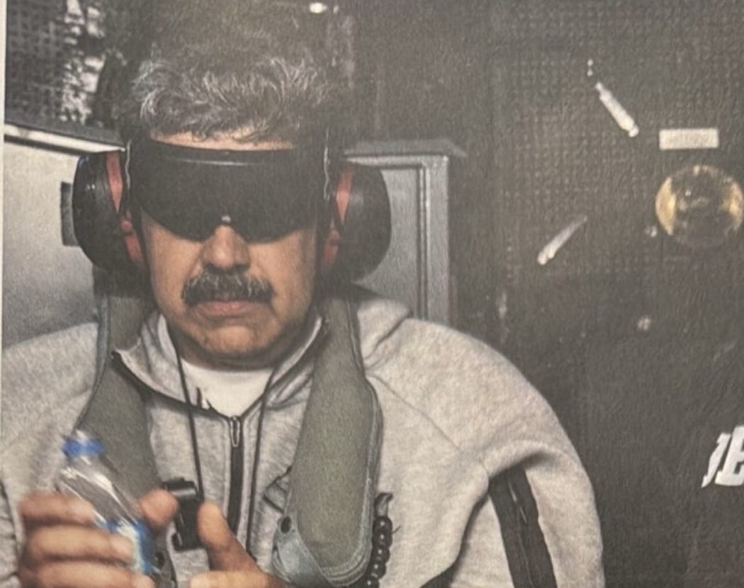 El presidente de Estados Unidos, Donald Trump, publica la primera imagen de Nicolás Maduro abordo del buque Iwo Jima este 3 de enero. Esto después que anunció su captura junto a su esposa, Cilia Flores.