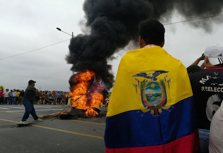 Tras nueve días de protestas en varios puntos del país que cortaron vías con neumáticos envueltos en llamas y afectaron la producción petrolera, el ministro de Defensa, Luis Lara, expresó que «la democracia del Ecuador está en serio riesgo».