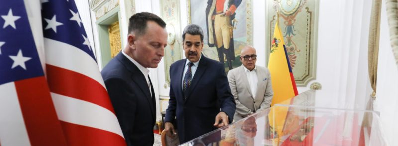 El presidente Nicolás Maduro, recibió este jueves, en el Palacio de Miraflores, al enviado especial del nuevo gobierno de EE.UU. Richard Grenell.