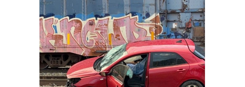 Los hechos se registraron la tarde del martes, poco antes de las 19:00 horas cuando el conductor de un auto Kia rojo quiso ganarle el paso al tren y quedó atravesado en las vías.
