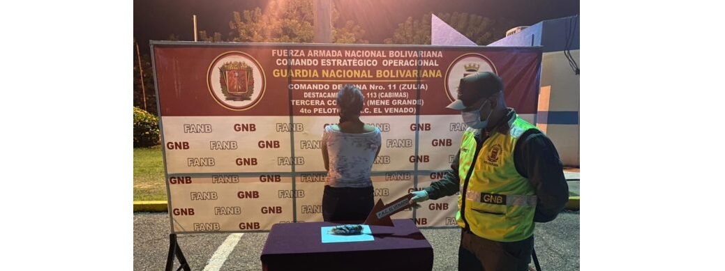 La detención se produjo en el PAC El Venado, perteneciente al Destacamento 113. Por su parte el General de Brigada Alberto Fermín Ulisse, Comandante de la Zona 11 Zulia, destacó que la mujer fue capturada cuando viajaba en un vehículo de transporte público de Maracaibo a Barquisimeto.