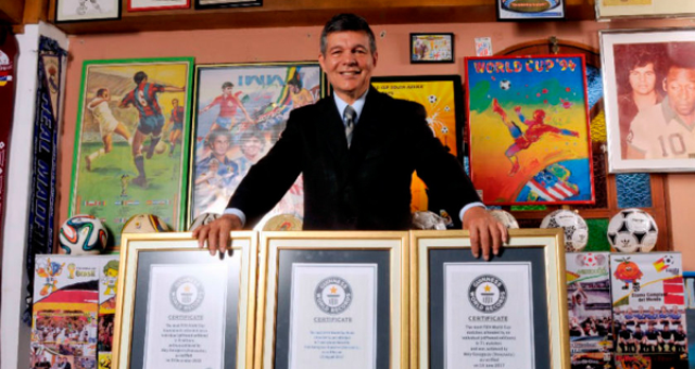 Recordado por haber ganado tres récords Guinness por asistir sin falta a nueve mundiales de fútbol consecutivos. Recorrió 225.699 kilómetros (equivalente a 5.5 vueltas por el mundo).