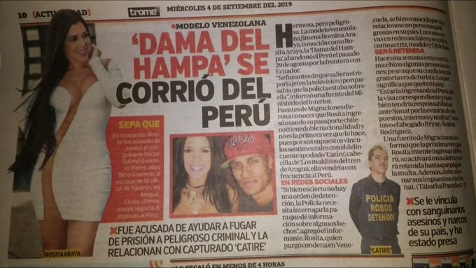 La policía peruana emitió una orden de captura en contra de Jimena Araya,“Rosita”, por su presunta vinculación con “El Catire” excabecilla de la banda “El Tren de Aragua” y quien fue detenido en Lima cuando se disponía a robar un banco.