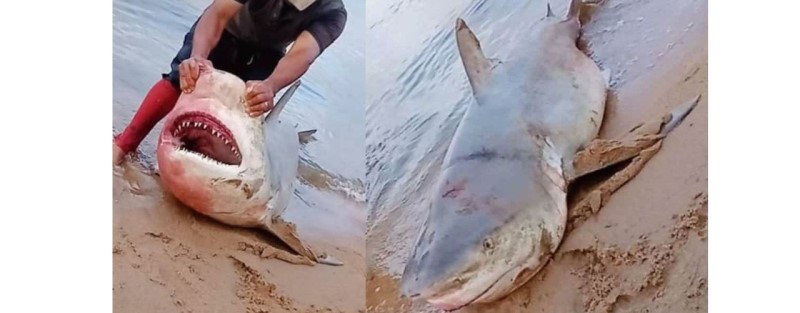 Un grupo de pescadores mostraron, este jueves 26 de mayo, a un tiburón de gran tamaño en las costas de la región de Punta de Palma, estado Zulia.