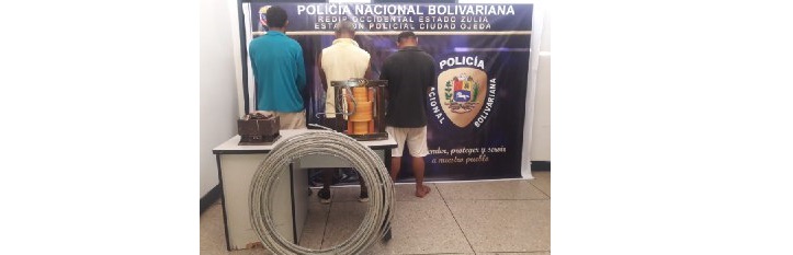 Funcionarios de la Policía Nacional Bolivariana (PNB), detuvieron a tres hombres por hurtar material estratégico a la empresa Corpoelec ubicada en Ciudad Ojeda, Costa Oriental del Lago.